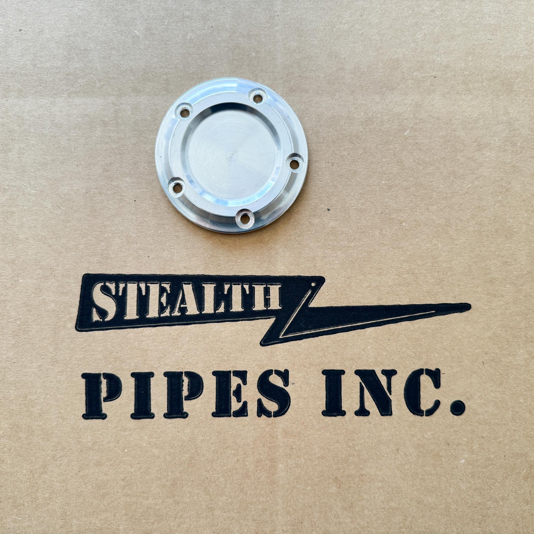 Stealth Pipes Twin Cam Points Cover – raw machined aluminum cover for Harley Twin Cam engines