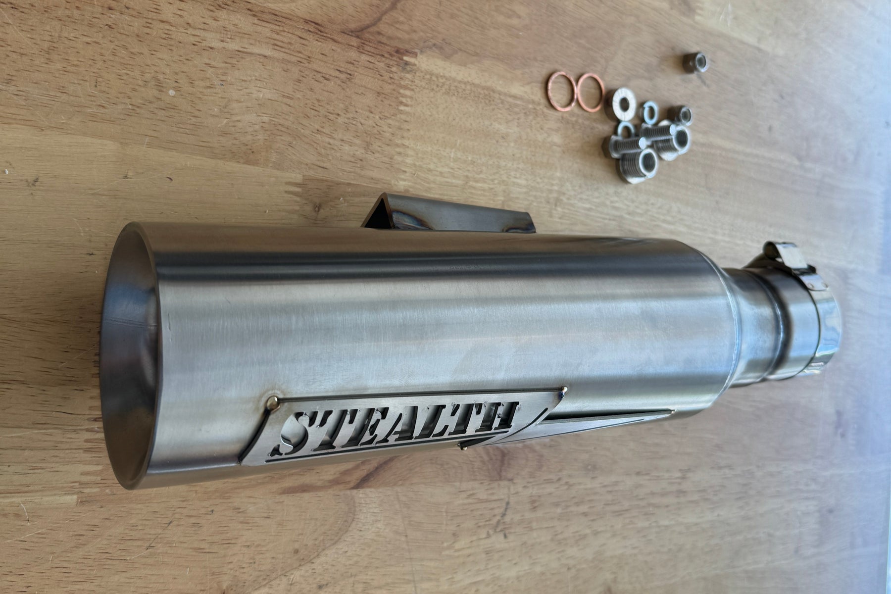 The Breacher Bolt On Muffler adds a bold “chop chop chop” tone and raw performance to your Stealth Pipes system. Designed as a direct replacement for all Stealth headers, this hand TIG welded muffler is built in the USA from premium stainless steel and delivers both aggressive sound and durability.