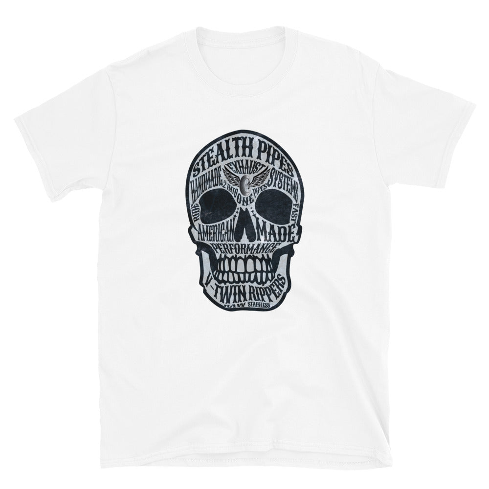 Stealth Gotta Have Skulls T-shirt in white – skull design with “Stealth Pipes Performance” text