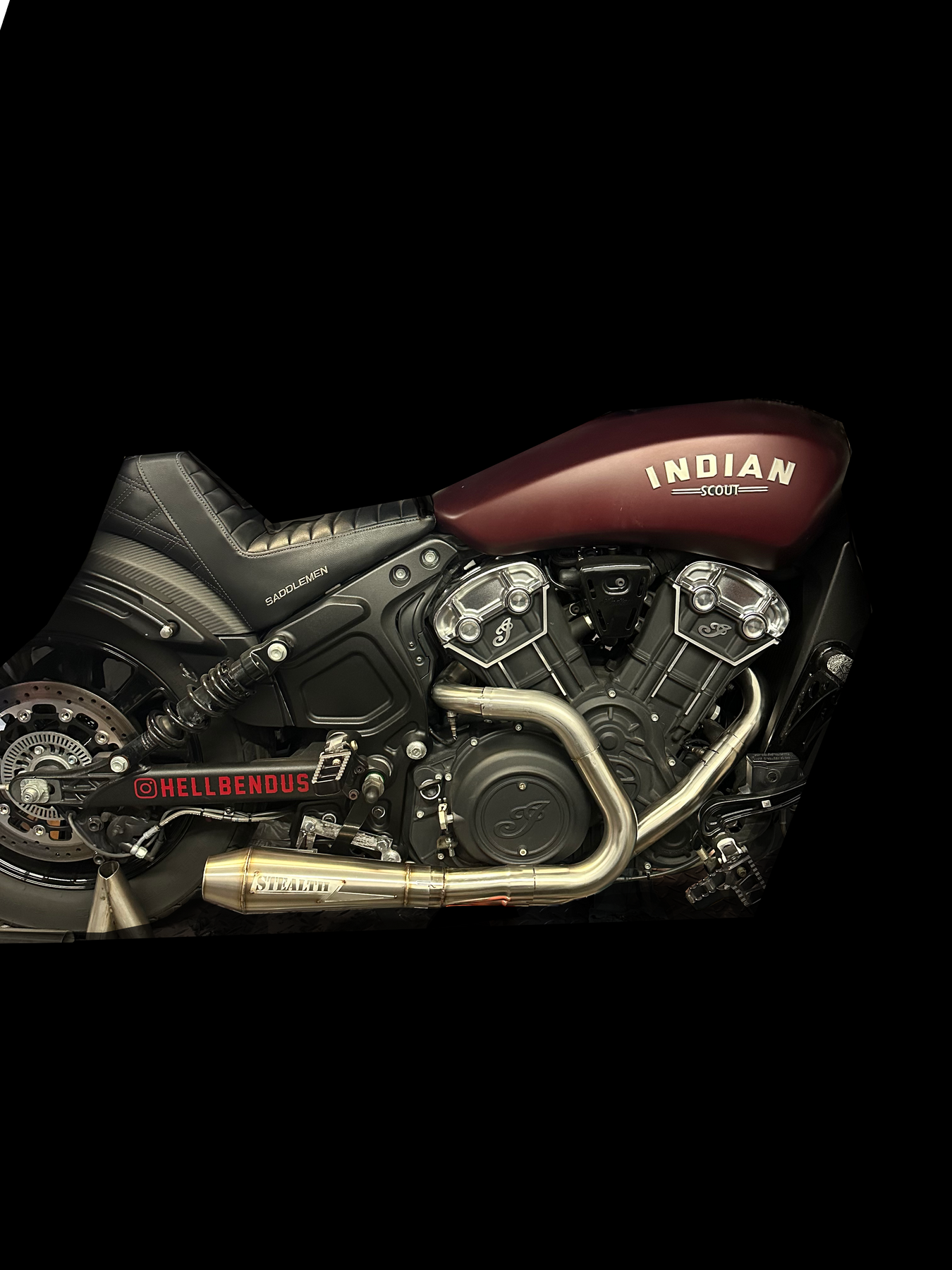 Stealth Pipes exhaust headers and muffler for Indian Scout 2015–2025 – TIG welded stainless