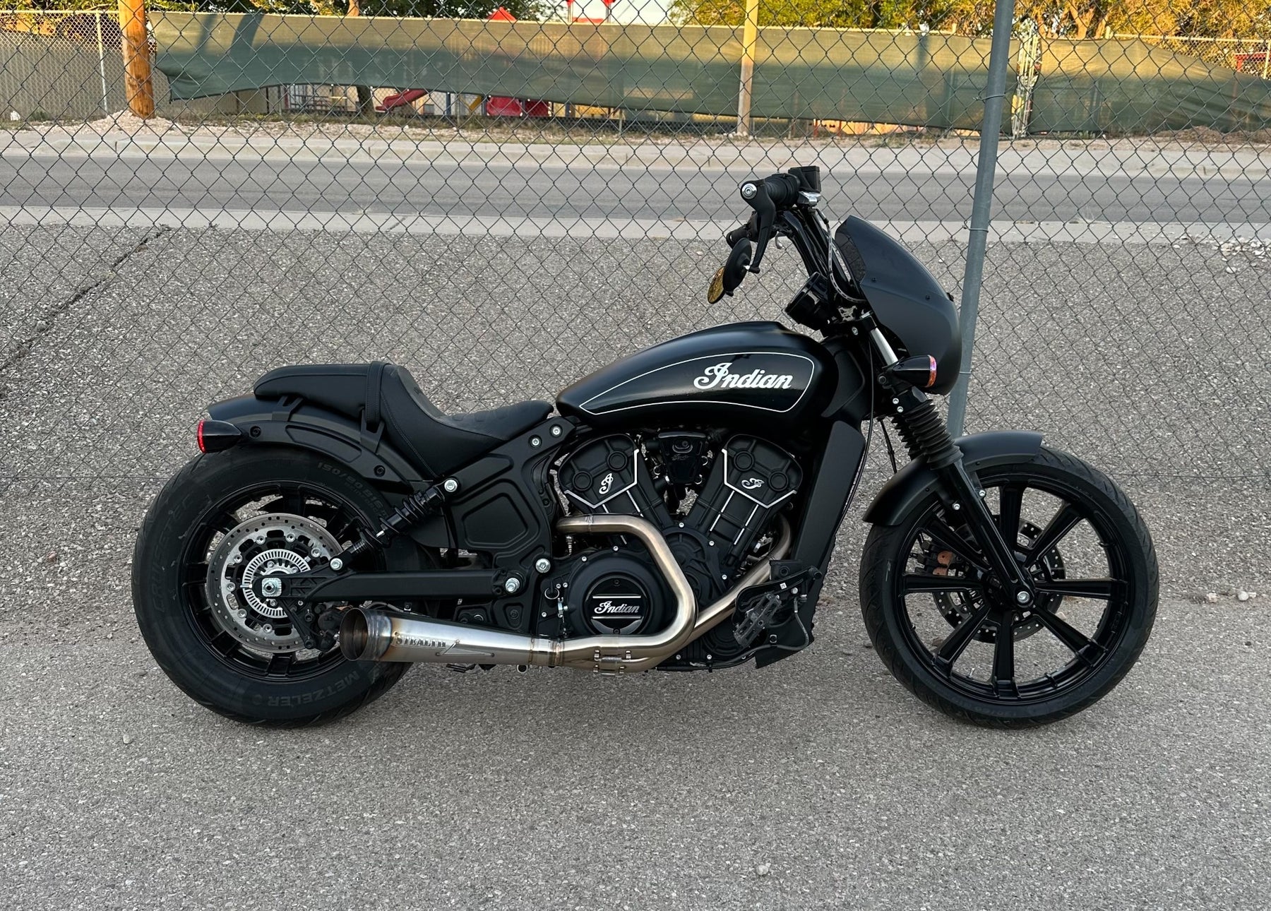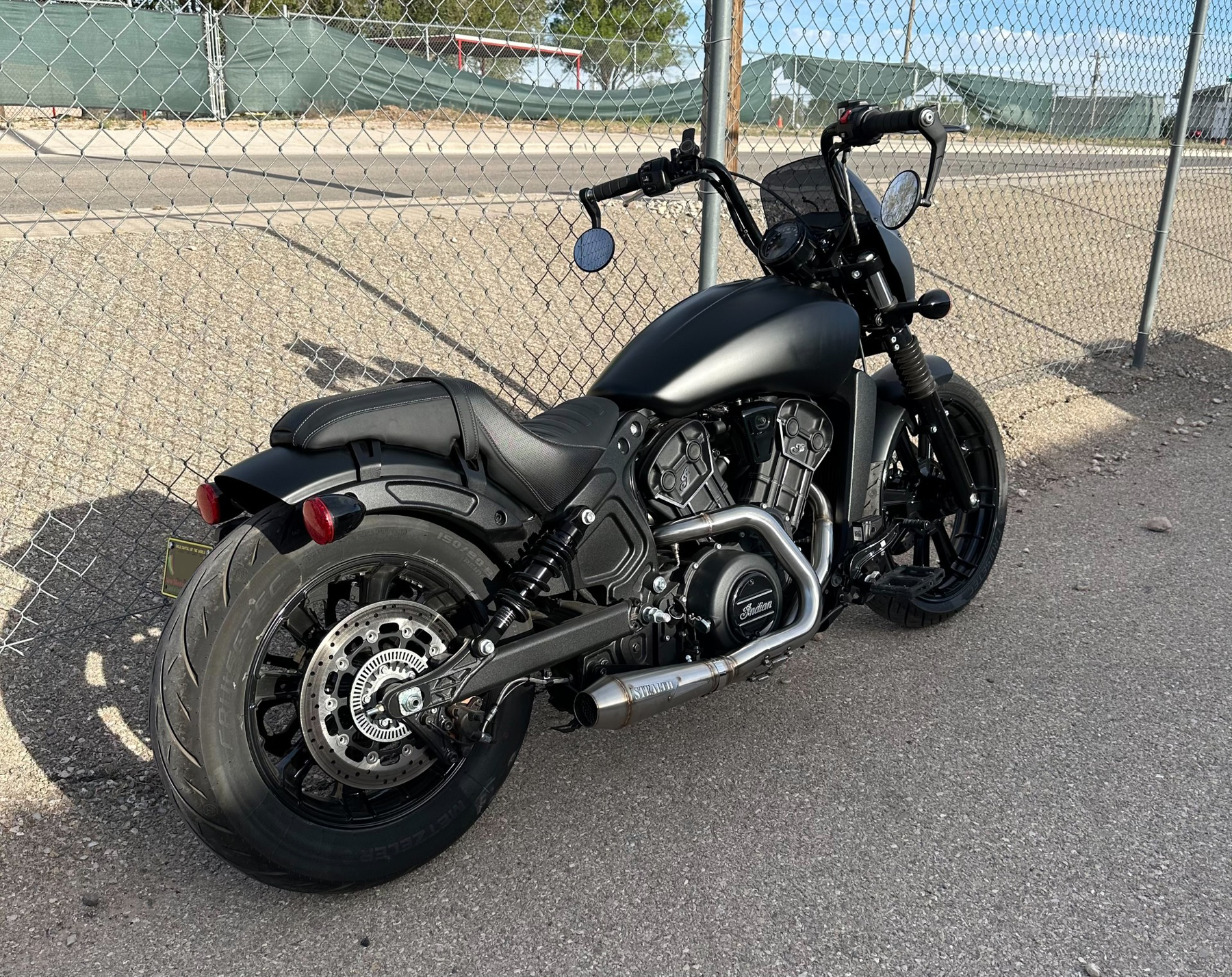 Indian Scout motorcycle with Stealth Pipes exhaust system installed – stainless muffler and headers