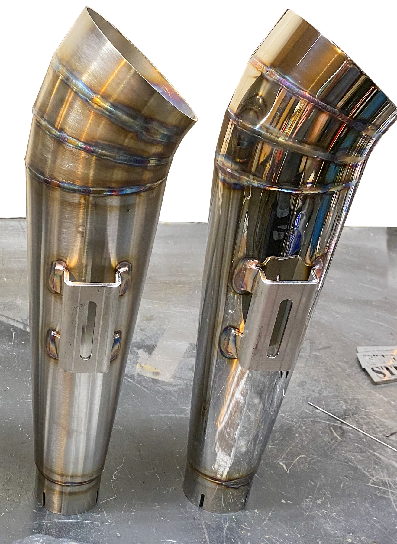 Hand TIG welded with unique heat-blued weld coloration
